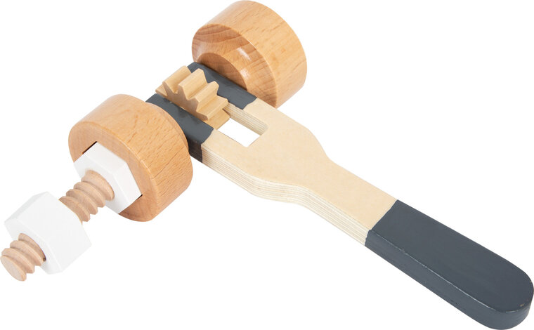 Een riem als praktische gereedschapshouder! Met deze verstelbare gereedschapsriem in klassieke werkplaatskleuren hebben minikunstenaars hun handen vrij en hun gereedschap altijd binnen handbereik! Met realistisch uitziende gereedschappen en accessoires bestaande uit schroevendraaiers, steeksleutels en perforaties van hout. De absolute highlights zijn de pijptang en de ratel! Met subtiele Miniwob-illustraties en praktische klikgespen.